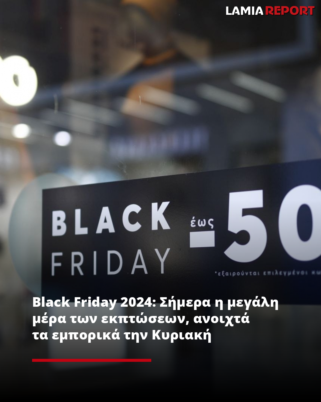 Σήμερα, είναι η κορυφαία μέρα των εκπτώσεων, η Black Friday 2024, την Κυριακή 1 Δεκεμβρίου θα είναι ανοιχτά τα εμπορικά καταστήματα, ενώ τη Δευτέρα 2 Δεκεμβρίου είναι η Cyber Monday.