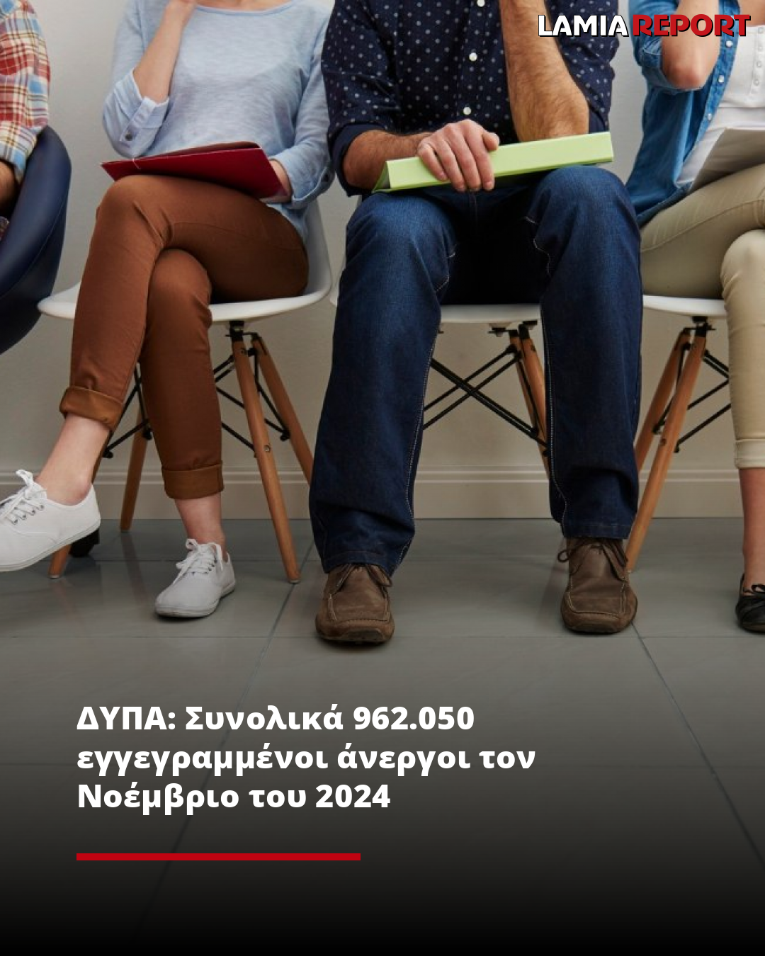 ΔΥΠΑ: Συνολικά 962.050 εγγεγραμμένοι άνεργοι τον Νοέμβριο του 2024