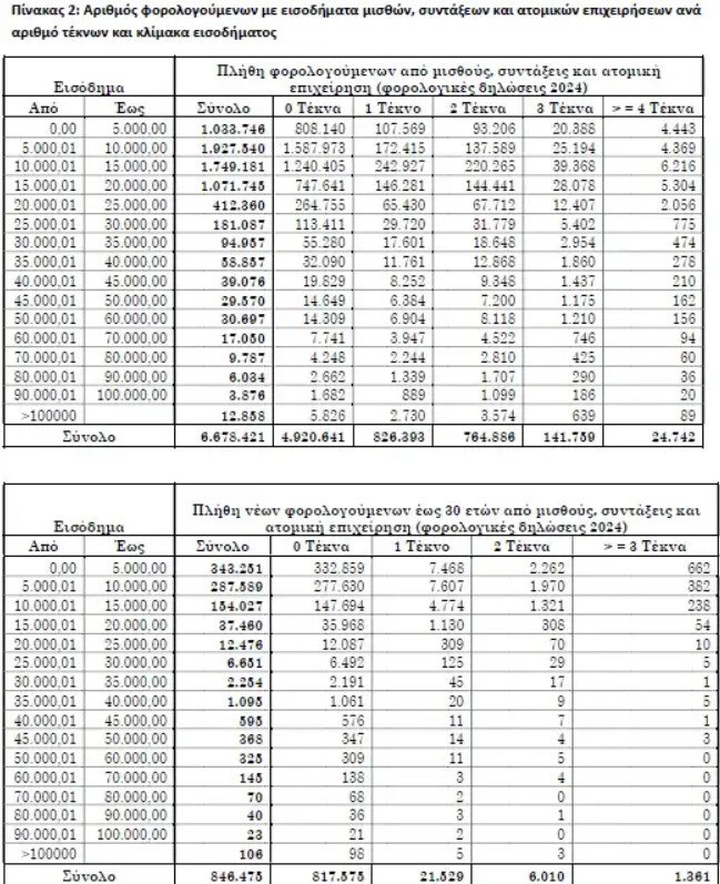Μικρές αλλά καθολικές ελαφρύνσεις για όσους δεν έχουν παιδιά, στοχευμένη αισθητή ενίσχυση σε τρίτεκνες/πολύτεκνες οικογένειες και τους έως 30 ετών