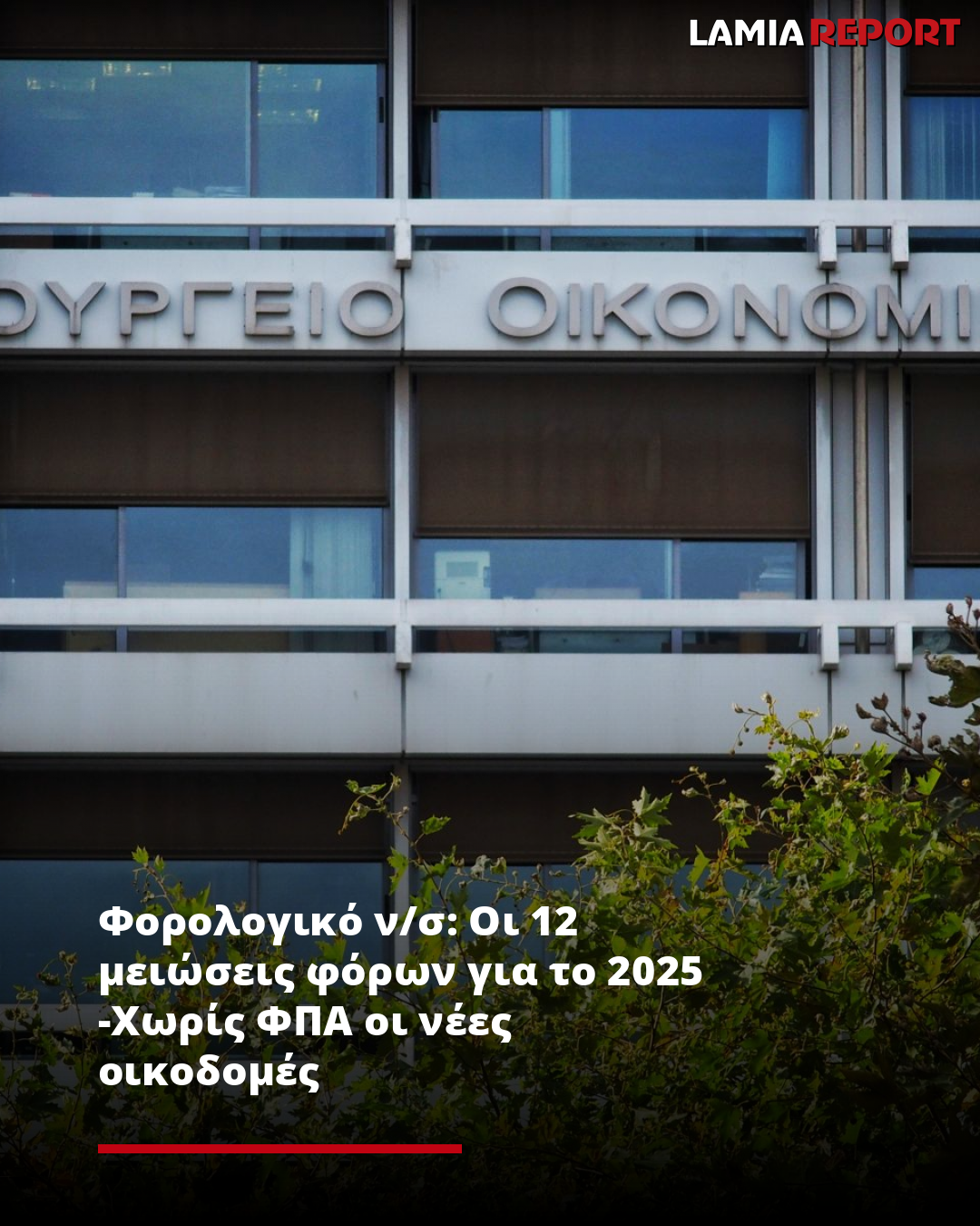Φορολογικό ν/σ: Οι 12 μειώσεις φόρων για το 2025 -Χωρίς ΦΠΑ οι νέες οικοδομές