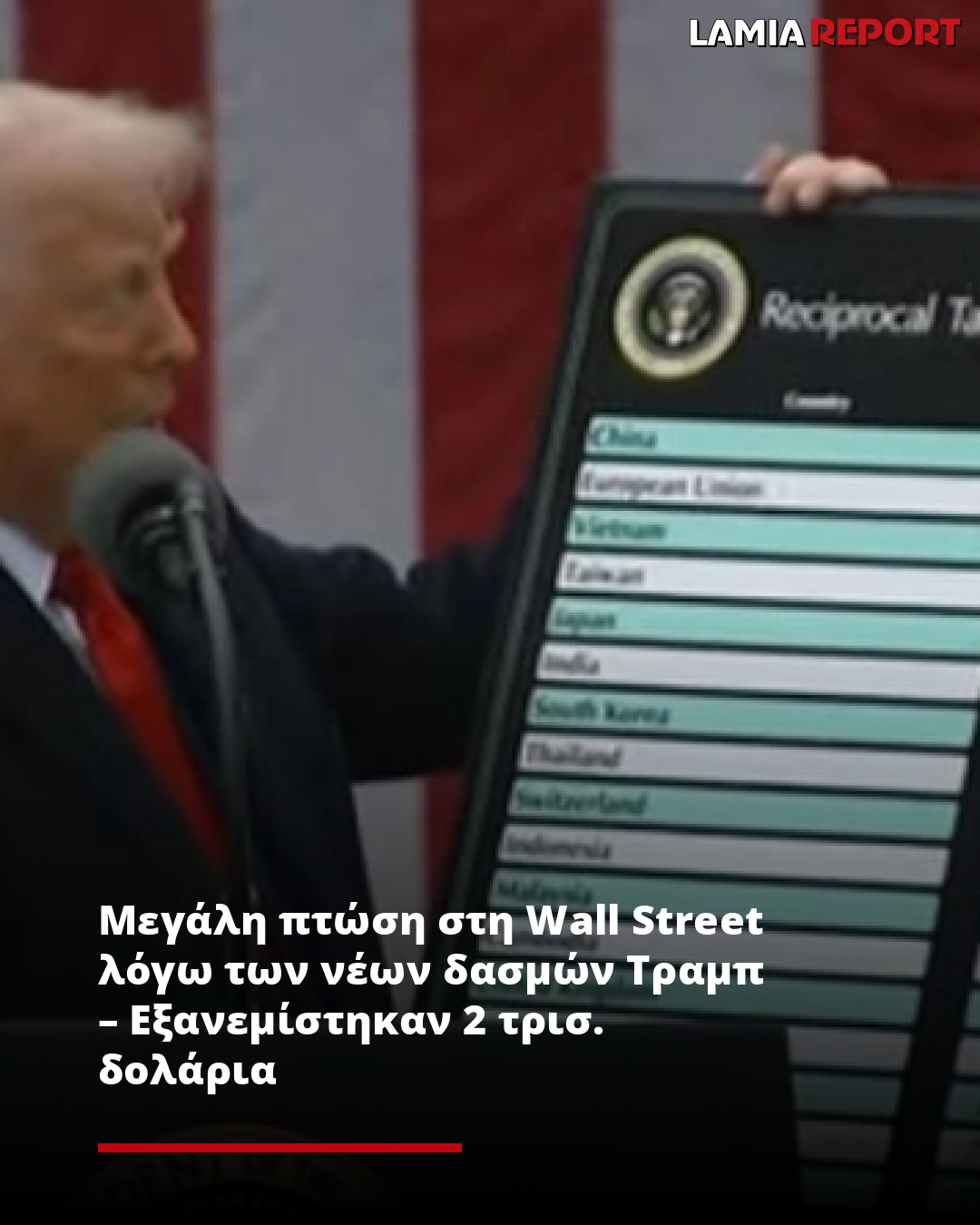 Μεγάλη πτώση στη Wall Street λόγω των νέων δασμών Τραμπ – Εξανεμίστηκαν 2 τρισ. δολάρια
