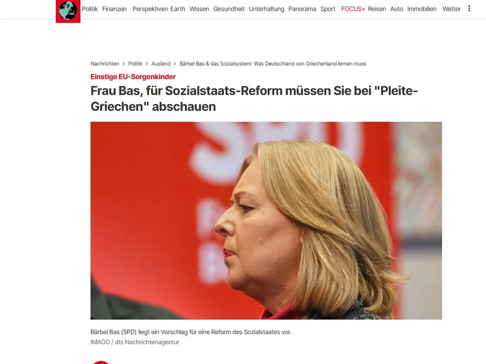 «Ακούγεται τρελό, αλλά αν πράγματι η σοσιαλδημοκράτης υπουργός Εργασίας Μπέρμπελ Μπας θέλει να μεταρρυθμίσει το γερμανικό κράτος πρόνοιας, ένα καλό σημείο εκκίνησης θα ήταν να μελετήσει τα μέτρα της κυβέρνησης Μητσοτάκη»