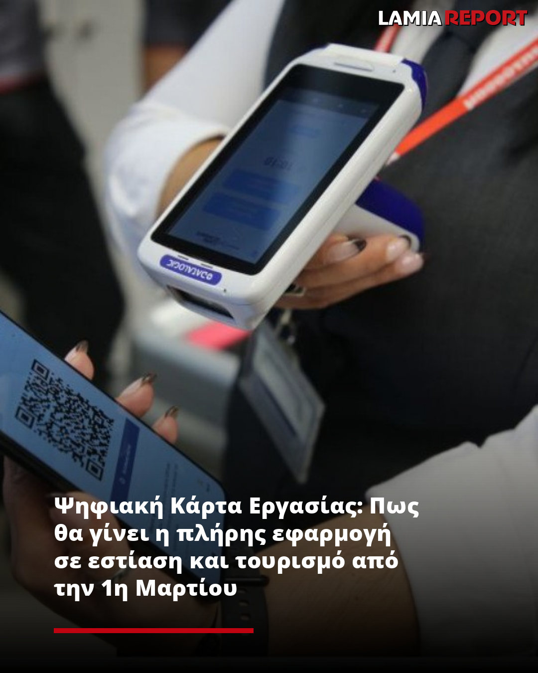 Σημειώνεται ότι από την 1η Μαρτίου του 2025, οι παραπάνω κλάδοι θα ενταχθούν στο καθεστώς πλήρους εφαρμογής της Ψηφιακής Κάρτας Εργασίας, ενώ το μέτρο έχει τεθεί σε πιλοτική εφαρμογή ήδη από τον Σεπτέμβριο του 2024, παρέχοντας στις επιχειρήσεις που δραστηριοποιούνται στην εστίαση και τον τουρισμό ένα εύλογο χρονικό διάστημα προκειμένου να προσαρμοστούν στα νέα δεδομένα.