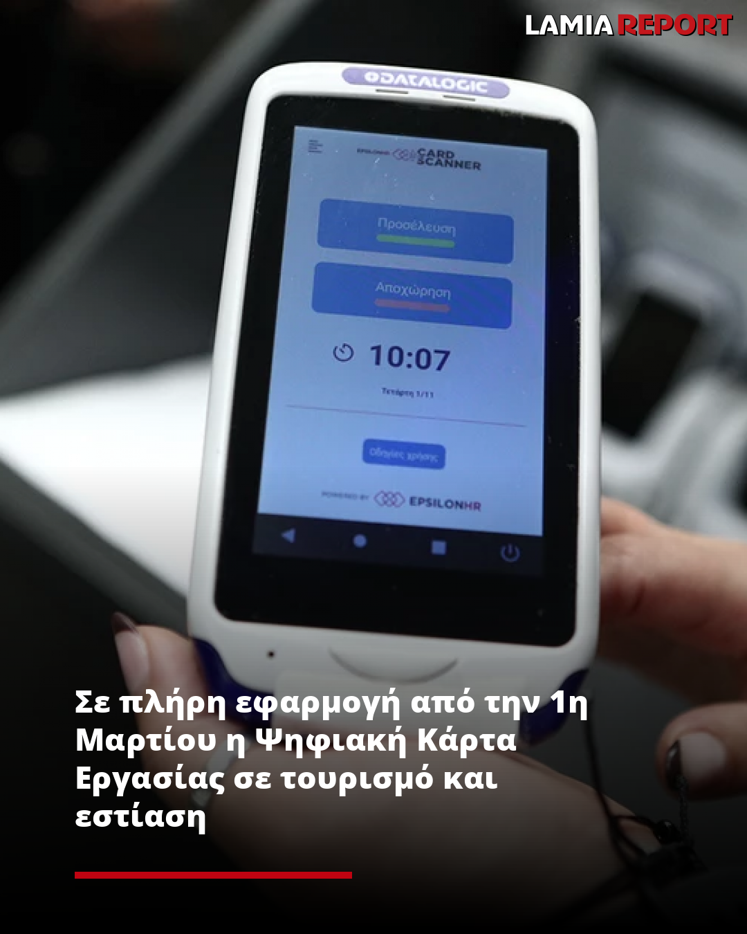Από την 1η Μαρτίου 2025 ξεκινά η πλήρης εφαρμογή της Ψηφιακής Κάρτας Εργασίας σε τουρισμό και εστίαση, μετά την πιλοτική φάση, η οποία προηγήθηκε το προηγούμενο εξάμηνο, προκειμένου να δοθεί επαρκής χρόνος στις επιχειρήσεις να προσαρμοστούν στα νέα δεδομένα.