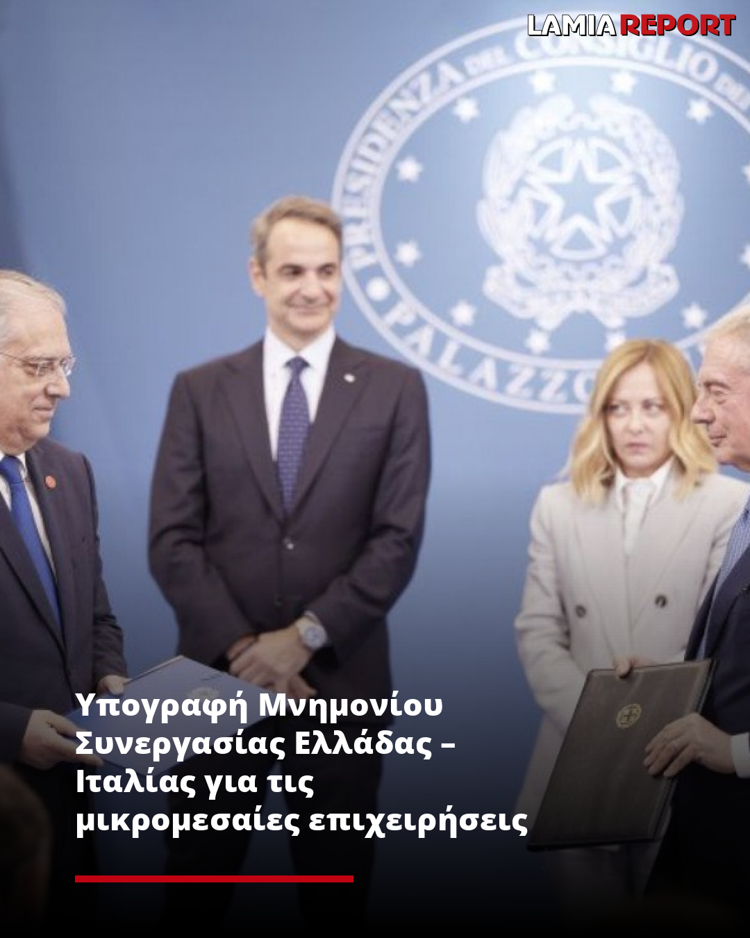 Η συμφωνία υπεγράφη από τον υπουργό Ανάπτυξης, Τάκη Θεοδωρικάκο και τον Ιταλό ομόλογό του, Adolfo Urso, για την ενίσχυση της συνεργασίας στη βιομηχανική πολιτική, τη στήριξη των μικρομεσαίων επιχειρήσεων και την καινοτομία