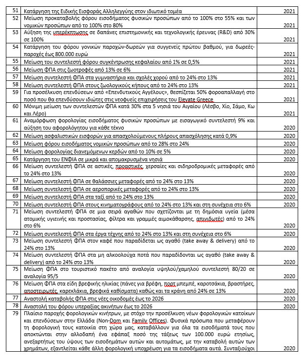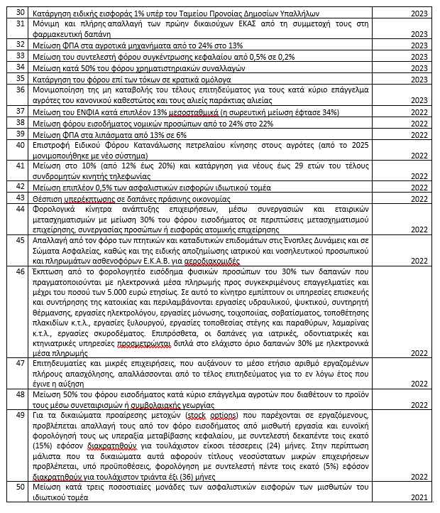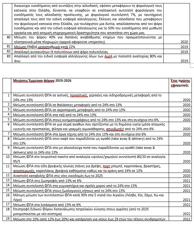 Από τις 83 μειώσεις φόρων και εισφορών, οι 25 αφορούν σε έμμεση φορολογία.