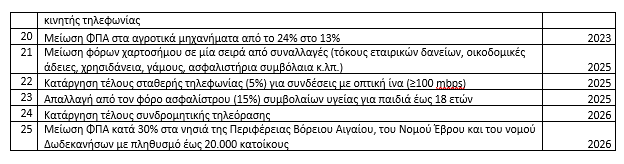 - Η μείωση κατά 30% του συντελεστή ΦΠΑ στα νησιά της Περιφέρειας Βορείου Αιγαίου, στον Νομό Έβρου και σε νησιά του Νομού Δωδεκανήσου με πληθυσμό έως 20.000 κατοίκους.