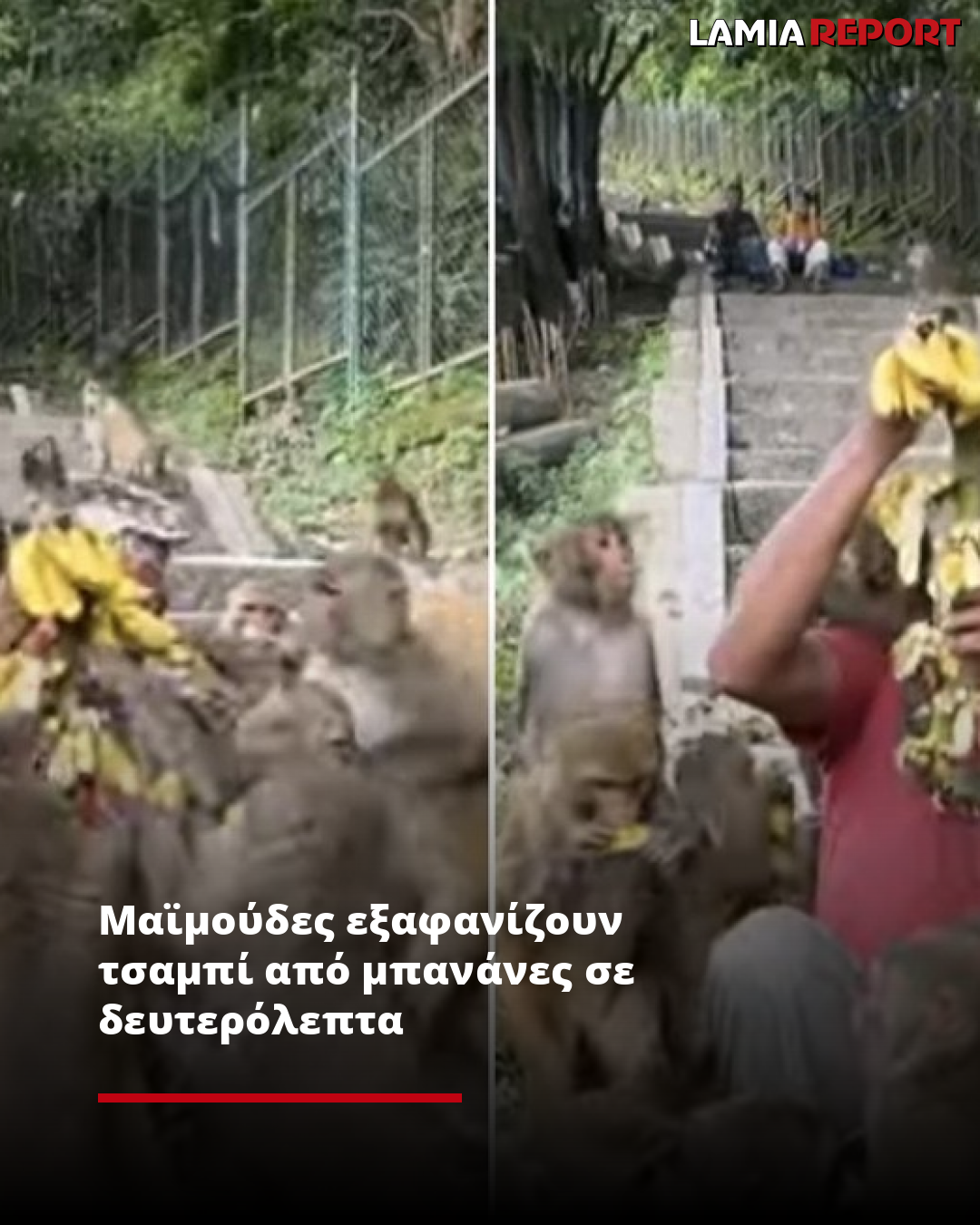 Μαϊμούδες εξαφανίζουν τσαμπί από μπανάνες σε δευτερόλεπτα