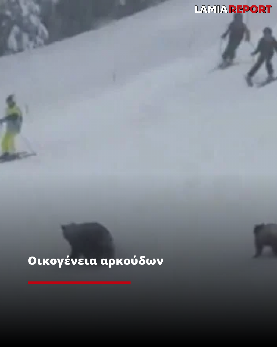 Κάποιος στο βίντεο φωνάζει «σταματήστε!» και «φύγετε από εκεί» στους σκιέρ καθώς η μεγαλύτερη αρκούδα και δύο μικρότερα αρκουδάκια περνούν τρέχοντας.