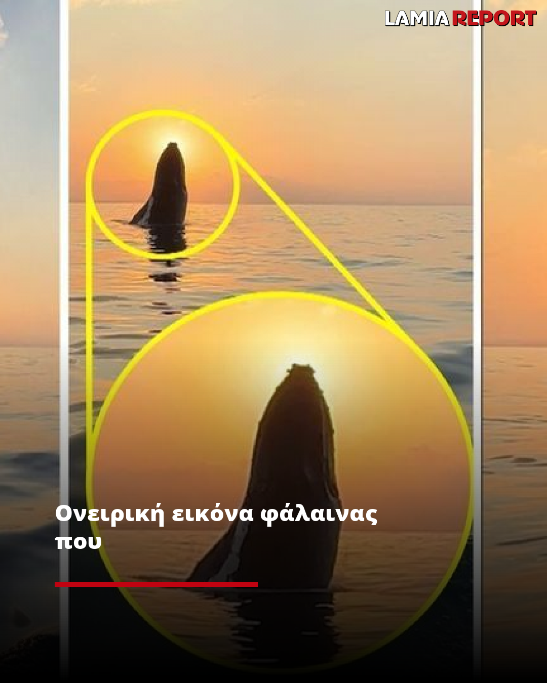 Ονειρική εικόνα φάλαινας που "αγγίζει" τον δύοντα ήλιο πηδώντας από το νερό