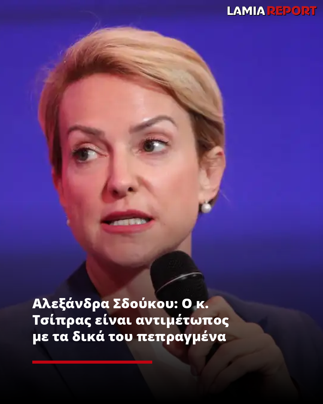 Ερωτηθείσα για τη συνέντευξη του πρώην πρωθυπουργού Αλέξη Τσίπρα στη Le Monde, η κυρία Σδούκου δήλωσε: «Ο κ. Τσίπρας μας μίλησε για την ”Ιθάκη της οικονομικής κρίσης” της χώρας μόνο που δεν μας είπε ότι θα μας πέρναγε μέσα από τη Σκύλλα και την Χάρυδβη των capital controls και του τρίτου και επαχθέστερου μνημονίου που γονάτισε τη χώρα. Ο κ. Τσίπρας είναι αντιμέτωπος με τα δικά του πεπραγμένα και όχι με τη Νέα Δημοκρατία. Η ιστορία έχει γραφτεί και τη θυμόμαστε όλοι: Η κυβέρνηση ΣΥΡΙΖΑ έπαιξε τη χώρα στα ζάρια. Δίχασε την κοινωνία. Προσέθεσε 80 δισ. χρέος. Προκάλεσε τεράστια ζημιά στις τράπεζες. Συγκυβέρνησε με την Ακροδεξιά. Υπονόμευσε τους θεσμούς. Επέβαλε capital controls και το τρίτο, αχρείαστο μνημόνιο. Με τον νόμο Παρασκευόπουλου αποφυλακίστηκαν επικίνδυνοι εγκληματίες».