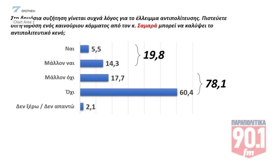 Το 78,1% απαντά ότι το κόμμα Σαμαρά δεν μπορεί να καλύψει το αντιπολιτευτικό κενό, έναντι 19,8% που απαντά «ναι» και «μάλλον ναι».