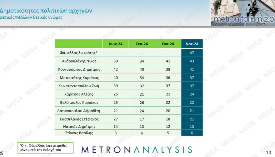 Δύο «φωτογραφίες της στιγμής» πήρε η Metron Analysis , μετρώντας τα ποσοστά των κομμάτων πριν και μετά την ίδρυση του κόμματος Κασσελάκη και την εκλογή στον ΣΥΡΙΖΑ, στη δημοσκόπηση που παρουσιάστηκε στο κεντρικό δελτίο του Mega.