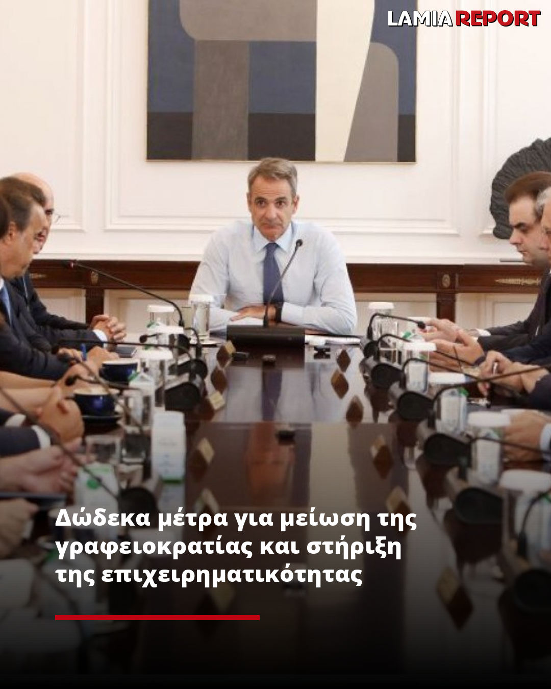 Ο αρμόδιος Υπουργός, ο Τάκης Θεοδωρικάκος, θα κάνει μια σχετική παρουσίαση για να δείξει ποια είναι τα πεδία στα οποία ήδη έχουμε απτά αποτελέσματα και ποια είναι τα υπόλοιπα πεδία, στα οποία στους αμέσως επόμενους μήνες θα έχουμε να δείξουμε κι εκεί συγκεκριμένα βήματα. Βήματα, τα οποία θα είναι προς όφελος όχι μόνο της επιχειρηματικής κοινότητας, αλλά και των εργαζομένων και της κοινωνίας στο σύνολό της. Διότι δεν υπάρχει καμιά αυταρέσκεια στον τρόπο που λειτουργούμε, έχουμε πετύχει πολλά, αλλά οφείλουμε απέναντι στην κοινωνία να πετύχουμε πολλά περισσότερα».