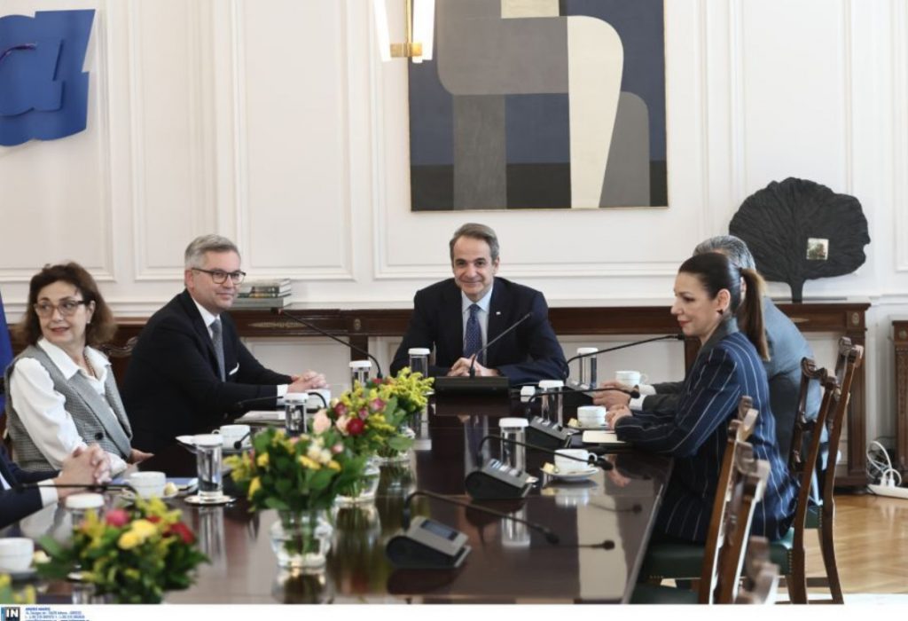 Με τον Επίτροπο Εσωτερικών Υποθέσεων και Μετανάστευσης της Ευρωπαϊκής Ένωσης Μάγκνους Μπρίνερ (Magnus Brunner) συναντήθηκε στο Μέγαρο Μαξίμου, ο πρωθυπουργός Κυριάκος Μητσοτάκης.