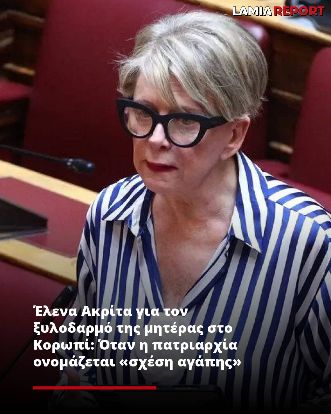 «Η 40χρονη γυναίκα από το Κορωπί, που μετά τον άγριο ξυλοδαρμό δήλωσε ότι «έχει σχέση αγάπης» με τον κακοποιητή της, δεν είναι απλώς ένα μεμονωμένο περιστατικό» αναφέρει σε ανακοίνωσή της η Έλενα Ακρίτα.
