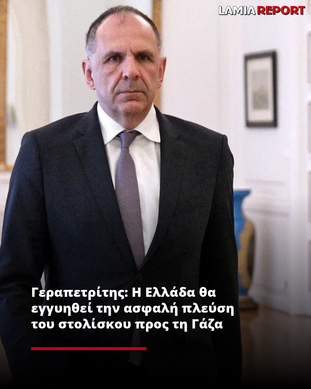 Ο υπουργός Εξωτερικών, Γιώργος Γεραπετρίτης, δήλωσε σήμερα, σύμφωνα με το protothema.gr, ότι η Ελλάδα θα διασφαλίσει την ασφαλή διέλευση των πλοίων που βρίσκονται στα χωρικά της ύδατα και συμμετέχουν στον διεθνή στολίσκο προς τη Γάζα, προσθέτοντας ότι η Αθήνα έχει ήδη ενημερώσει το Ισραήλ για την παρουσία Ελλήνων πολιτών στο συγκεκριμένο εγχείρημα.