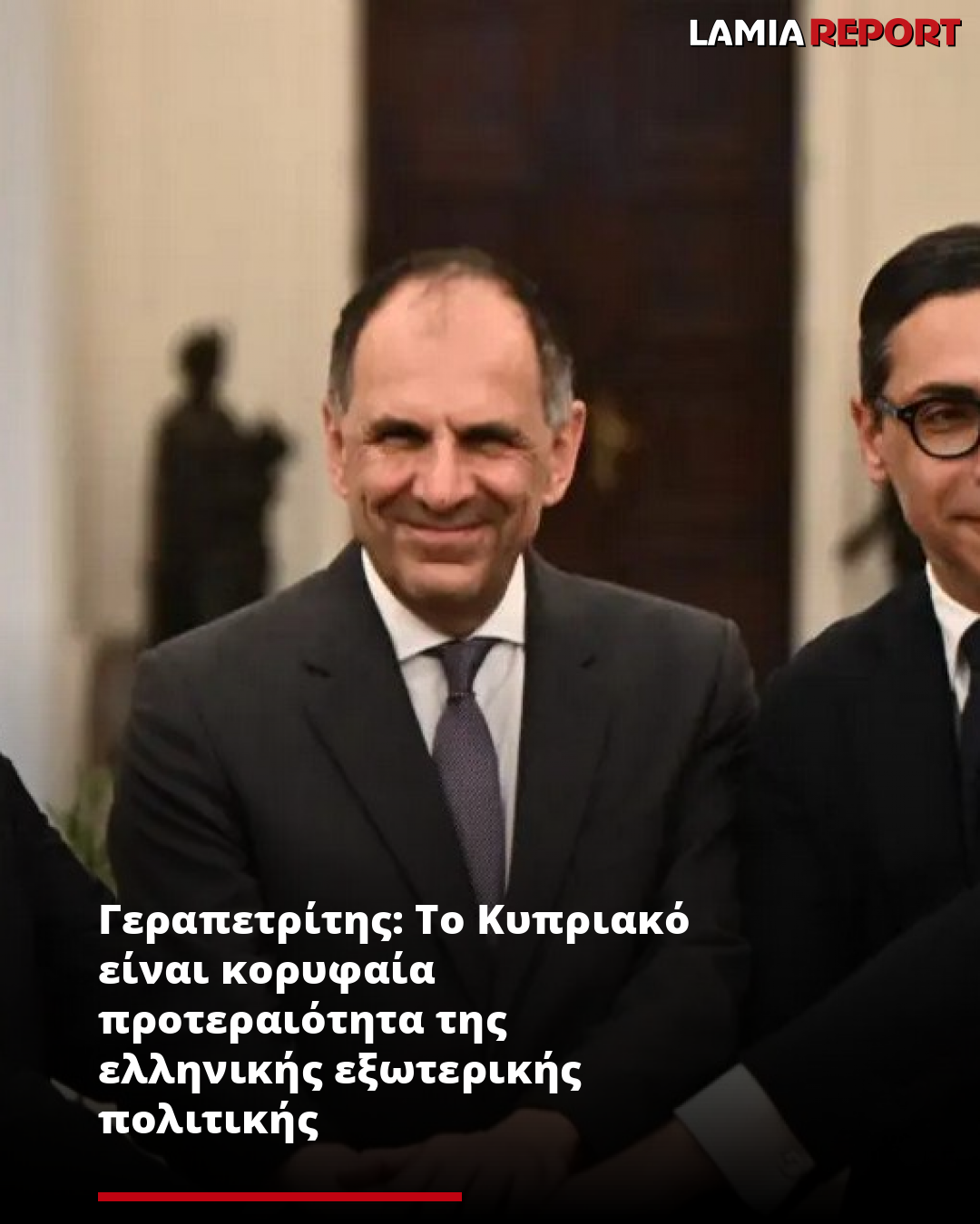 Κορυφαία προτεραιότητα της εξωτερικής πολιτικής της Ελλάδα είναι το Κυπριακό, επισήμανε σήμερα (13.03.2025) ο υπουργός Εξωτερικών, Γιώργος Γεραπετρίτης, μετά την ολοκλήρωση της τριμερούς συνάντησης Ελλάδας, Κύπρου και Ισραήλ στην Αθήνα.