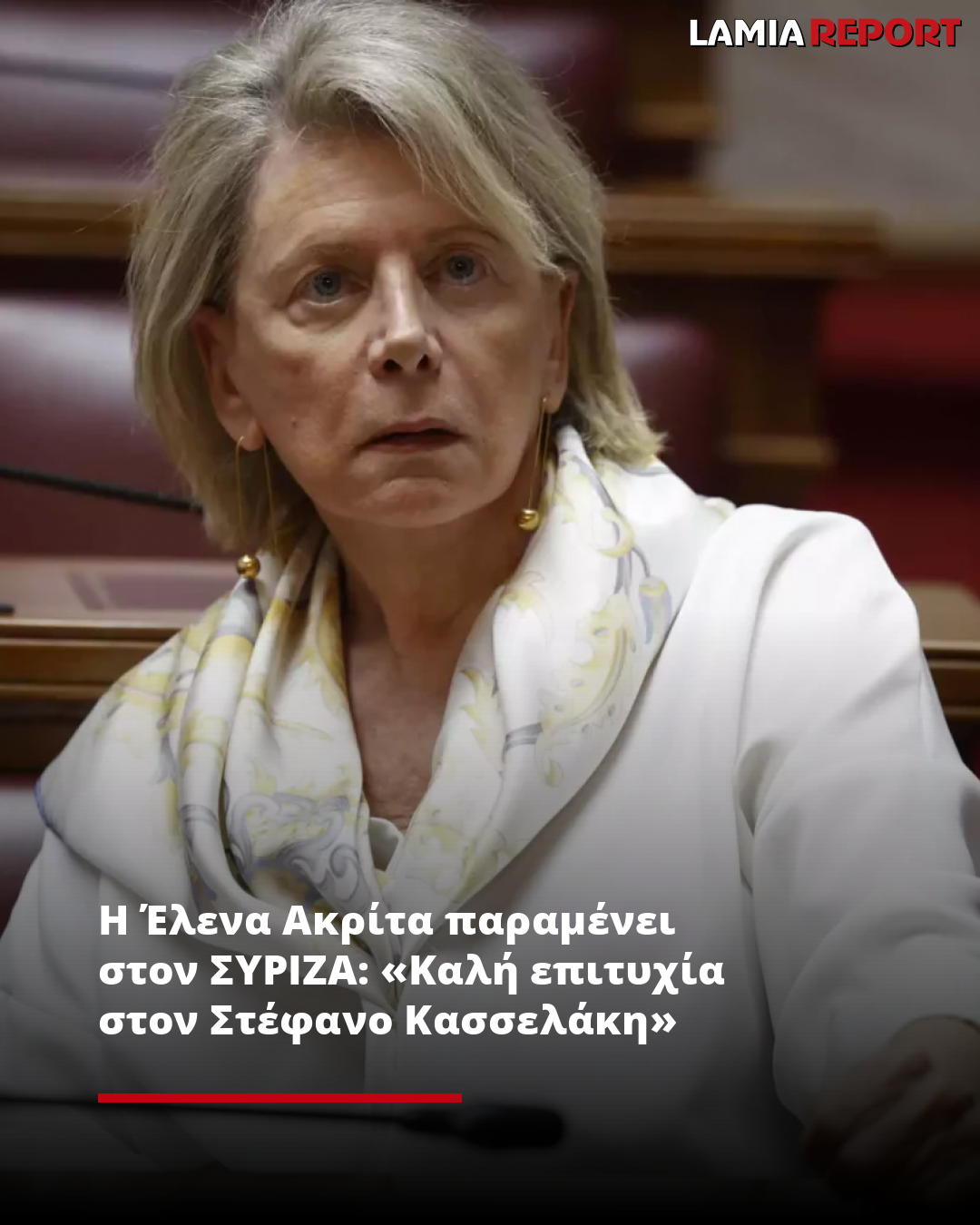 Στον ΣΥΡΙΖΑ παραμένει η Έλενα Ακρίτα, βάζοντας τέλος στα σενάρια που την ήθελαν να «κοιτάζουν» προς το νέο κόμμα του Στέφανου Κασσελάκη.