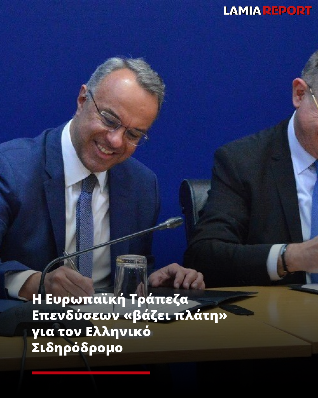 Υπεγράφη, σήμερα, στο Υπουργείο Υποδομών και Μεταφορών η σύμβαση με αντικείμενο την υποστήριξη από την Ευρωπαϊκή Τράπεζα Επενδύσεων (ΕΤΕπ) της στρατηγικής εφαρμογής και του επενδυτικού σχεδίου για την ελληνική σιδηροδρομική υποδομή, από τον Υπουργό Υποδομών και Μεταφορών, Χρήστο Σταϊκούρα και τον Αντιπρόεδρο της ΕΤΕπ, Ιωάννη Τσακίρη.