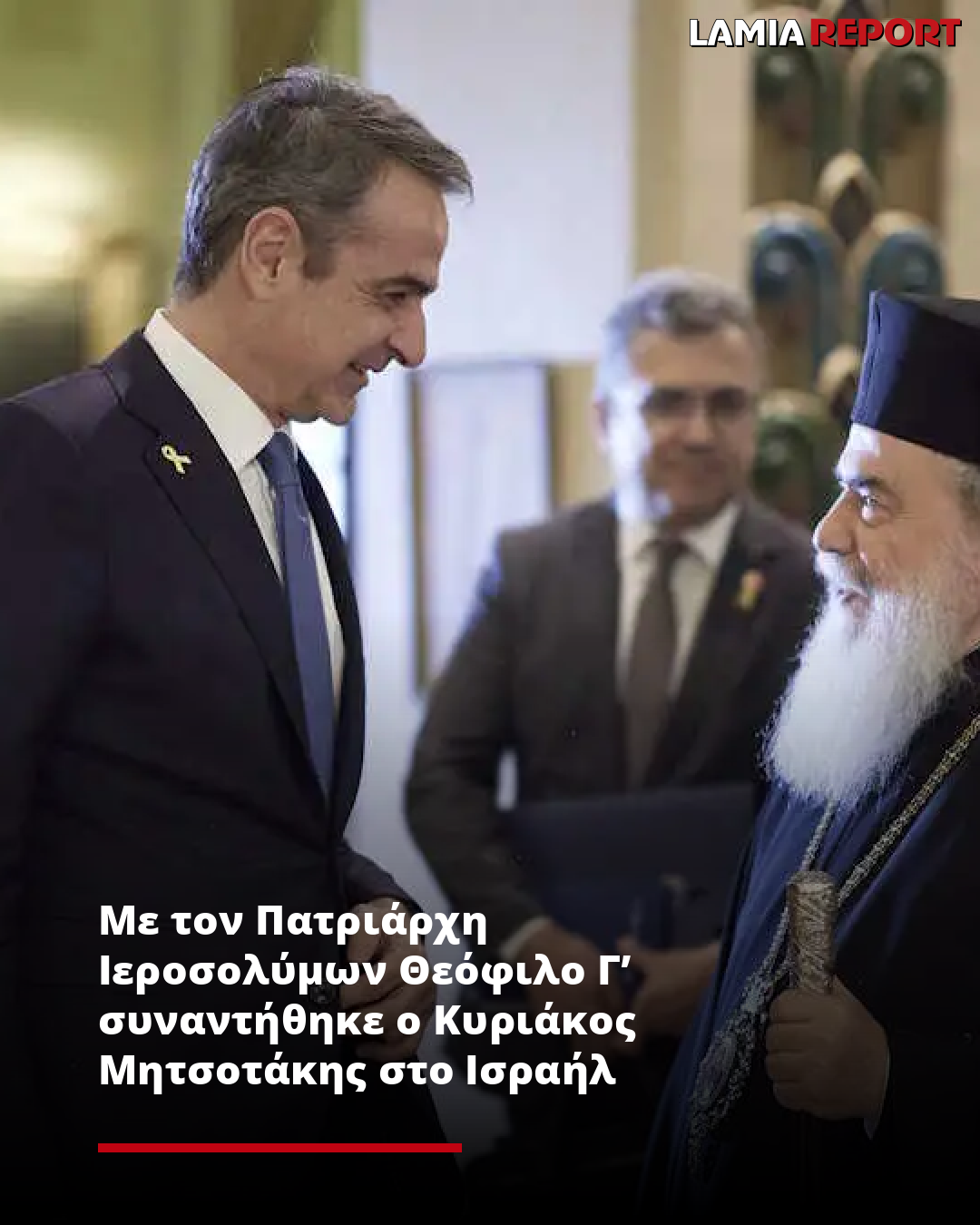 Με τον Πατριάρχη Ιεροσολύμων Θεόφιλο Γ’ συναντήθηκε στο Ισραήλ ο Κυριάκος Μητσοτάκης. Νωρίτερα σήμερα (30.03.2025), ο Έλληνας Πρωθυπουργός είχε διαδοχικές επαφές με τον Πρόεδρο του Ισραήλ και τον Πρωθυπουργό, Ισαάκ Χέρτσογκ και Μπέντζαμιν Νετανιάχου.