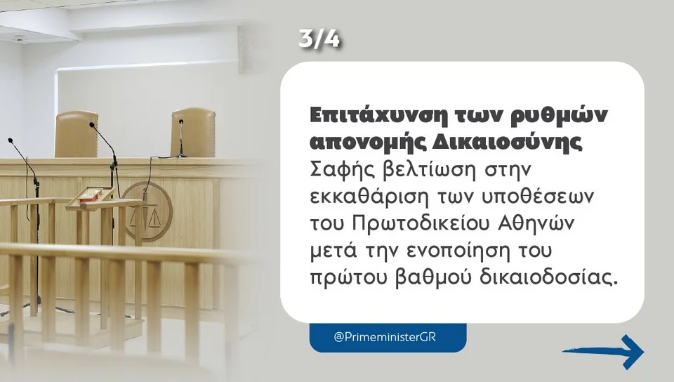 Παραμένω στην επιτάχυνση των ρυθμών απονομής Δικαιοσύνης, όπου στο Πρωτοδικείο Αθηνών η εικόνα έχει ήδη βελτιωθεί σημαντικά. Το πρώτο τρίμηνο του 2025 εκδικάστηκαν όχι μόνο όλες οι εισελθείσες υποθέσεις (32.460) αλλά και παλαιότερες, συνολικά 32.630! Την ίδια περίοδο πέρσι, πριν εφαρμοστεί ο Δικαστικός Χάρτης, η εκκαθάριση είχε φτάσει στο 87,5%. Δηλαδή, από μερική εκκαθάριση περάσαμε σε πλήρη, όπου όλες οι υποθέσεις που μπήκαν στο δικαστήριο, εκδικάστηκαν. Για να μειωθεί ακόμη περισσότερο ο χρόνος εκδίκασης των υποθέσεων εμπορικού και ενοχικού δικαίου, αρμοδιότητας μονομελούς Πρωτοδικείου, από τον Νοέμβριο τα υπάρχοντα 14 πινάκια θα διπλασιαστούν. Αυτό σημαίνει ότι μέσα στον επόμενο μήνα θα οριστεί δικάσιμος για περίπου 15.000 εκκρεμείς υποθέσεις, οι οποίες θα εκδικαστούν από τους δικαστές του Τμήματος Εμπορικού-Ενοχικού Δικαίου του Πρωτοδικείου, που για πρώτη φορά διαθέτει 160 δικαστικούς λειτουργούς.