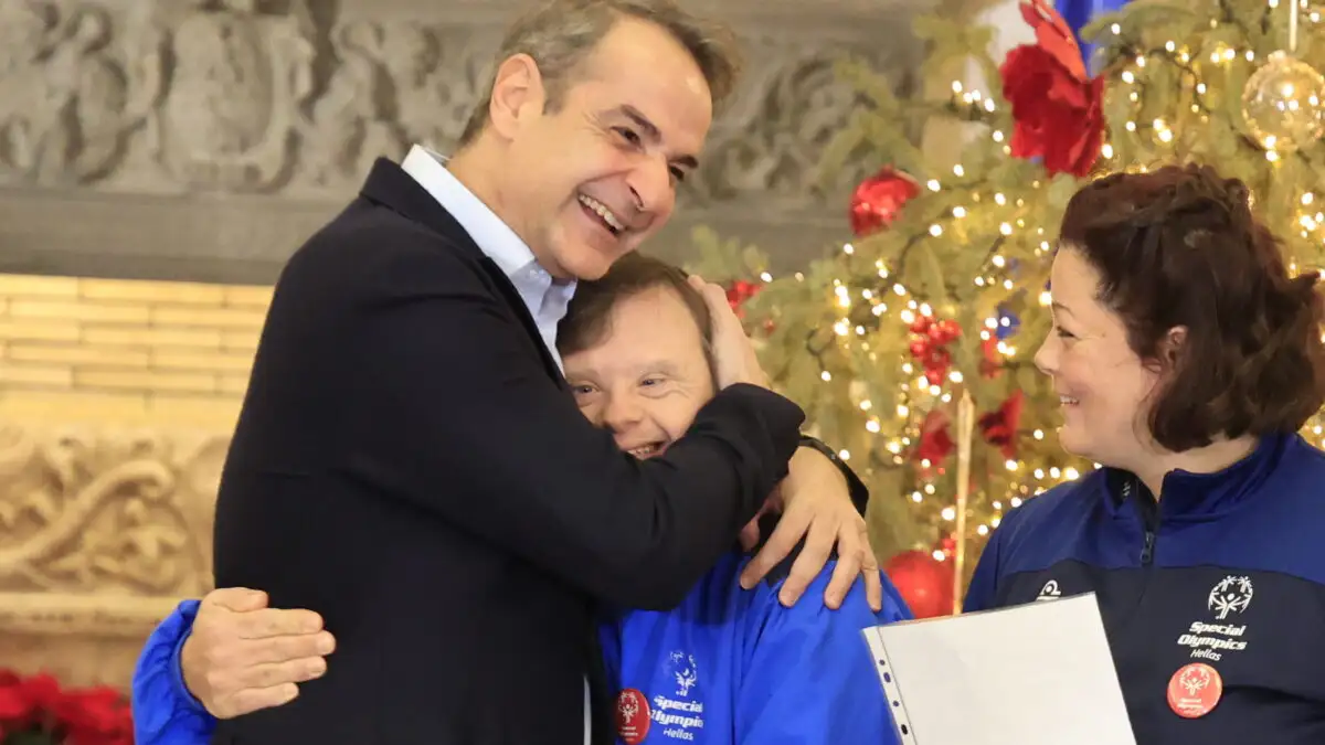 Ο Κυριάκος Μητσοτάκης άκουσε τα κάλαντα της Πρωτοχρονιάς από αθλητές των Special Olympics Hellas