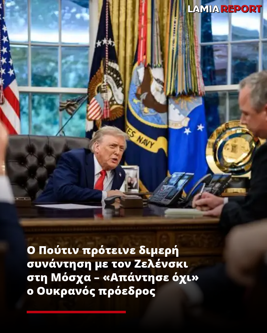 Ο πρόεδρος της Ουκρανίας, που βρισκόταν εκείνη τη στιγμή στον Λευκό Οίκο μαζί με Ευρωπαίους ηγέτες, «απάντησε “όχι”», σύμφωνα με την ίδια πηγή.