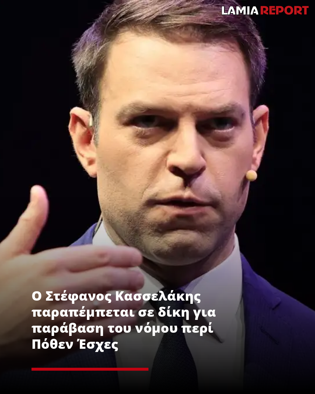Ο πρώην πρόεδρος του ΣΥΡΙΖΑ Στέφανος Κασσελάκης θα καθίσει στο εδώλιο του Μονομελούς Πλημμελειοδικείου Αθηνών για παράβαση του νόμου 3213/2003, άρθρο 8, παρ. 1 και 3 όπως τροποποιήθηκε με το νόμο 5026/2023.