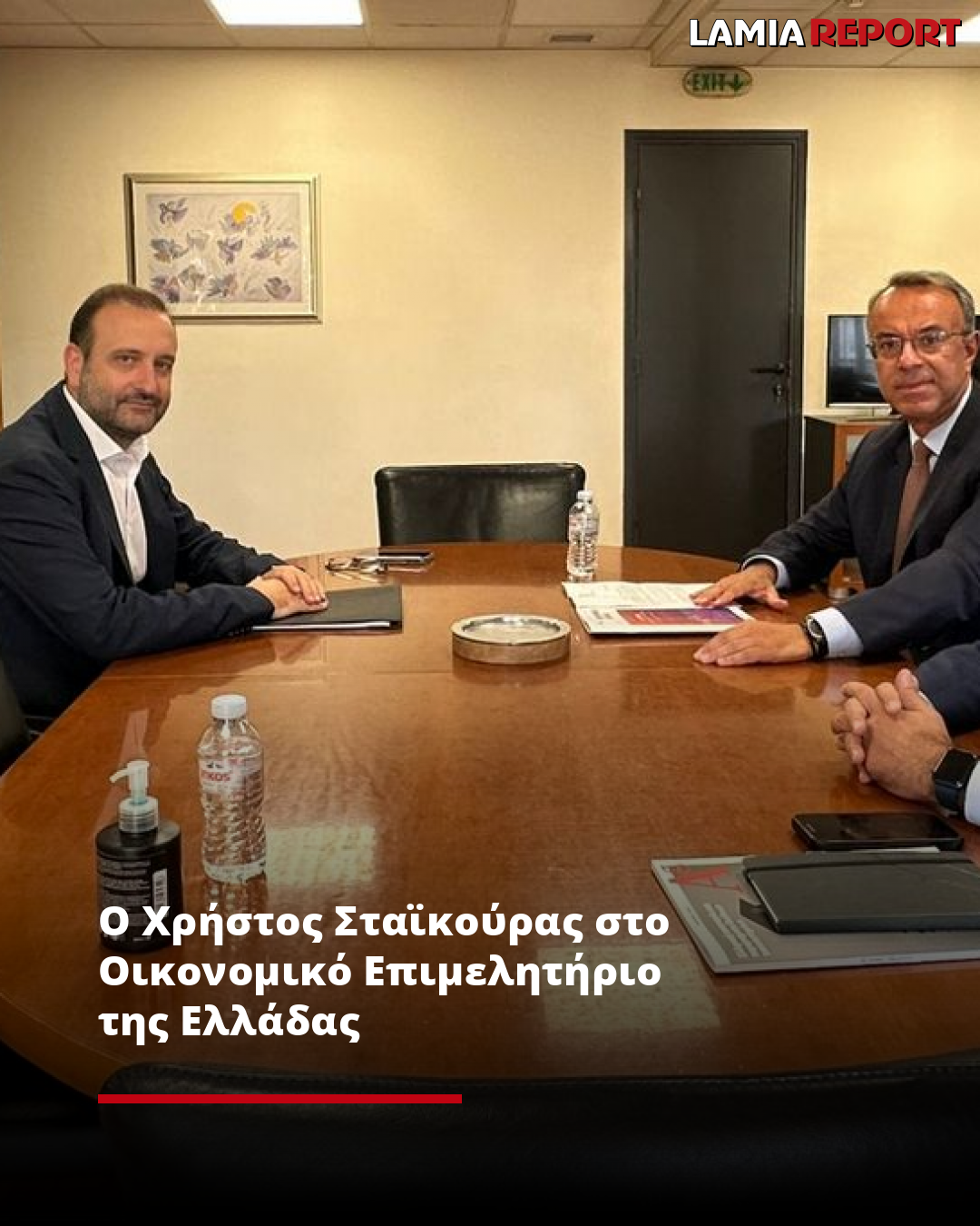 Ο Βουλευτής Φθιώτιδας της Νέας Δημοκρατίας, Χρήστος Σταϊκούρας, επισκέφθηκε σήμερα το Οικονομικό Επιμελητήριο της Ελλάδας και συναντήθηκε με τον Πρόεδρό του Κωνσταντίνο Κόλλια, με τον οποίο συζήτησαν εκτενώς γύρω από τις τρέχουσες εξελίξεις στην οικονομία της χώρας, υπό το πρίσμα και των πρόσφατων οικονομικών και φορολογικών μέτρων και πρωτοβουλιών της Κυβέρνησης, που ανακοινώθηκαν από τον Πρωθυπουργό Κυριάκο Μητσοτάκη στη ΔΕΘ.