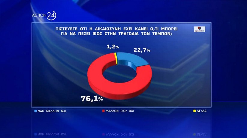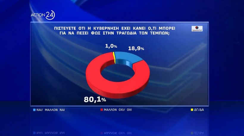 Συντριπτικό είναι και το ποσοστό (80.1%) που θεωρεί πως η κυβέρνηση δεν έχει κάνει ο,τι μπορεί για να πέσει φως στην τραγωδία στα Τέμπη.