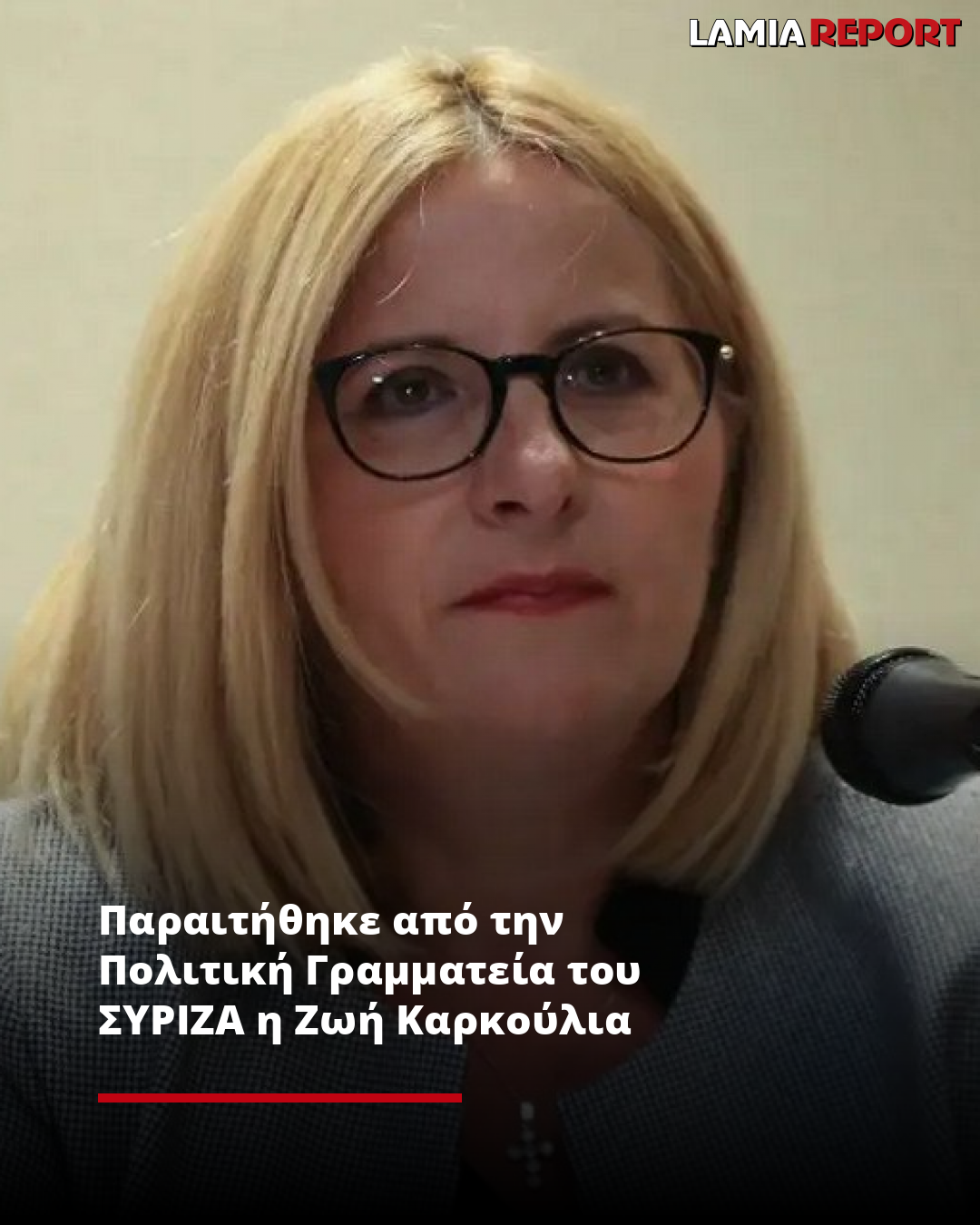 Η Ζωή Καρκούλια στην επιστολή παραίτησης από την Πολιτική Γραμματεία του ΣΥΡΙΖΑ κάνει λόγο πως «το κόμμα αντιμετωπίζει υπαρξιακό και ταυτοτικό πρόβλημα» και πως «η διαδικασία που ακολουθείται ενόψει του συνεδρίου δεν με βρίσκει σύμφωνη».