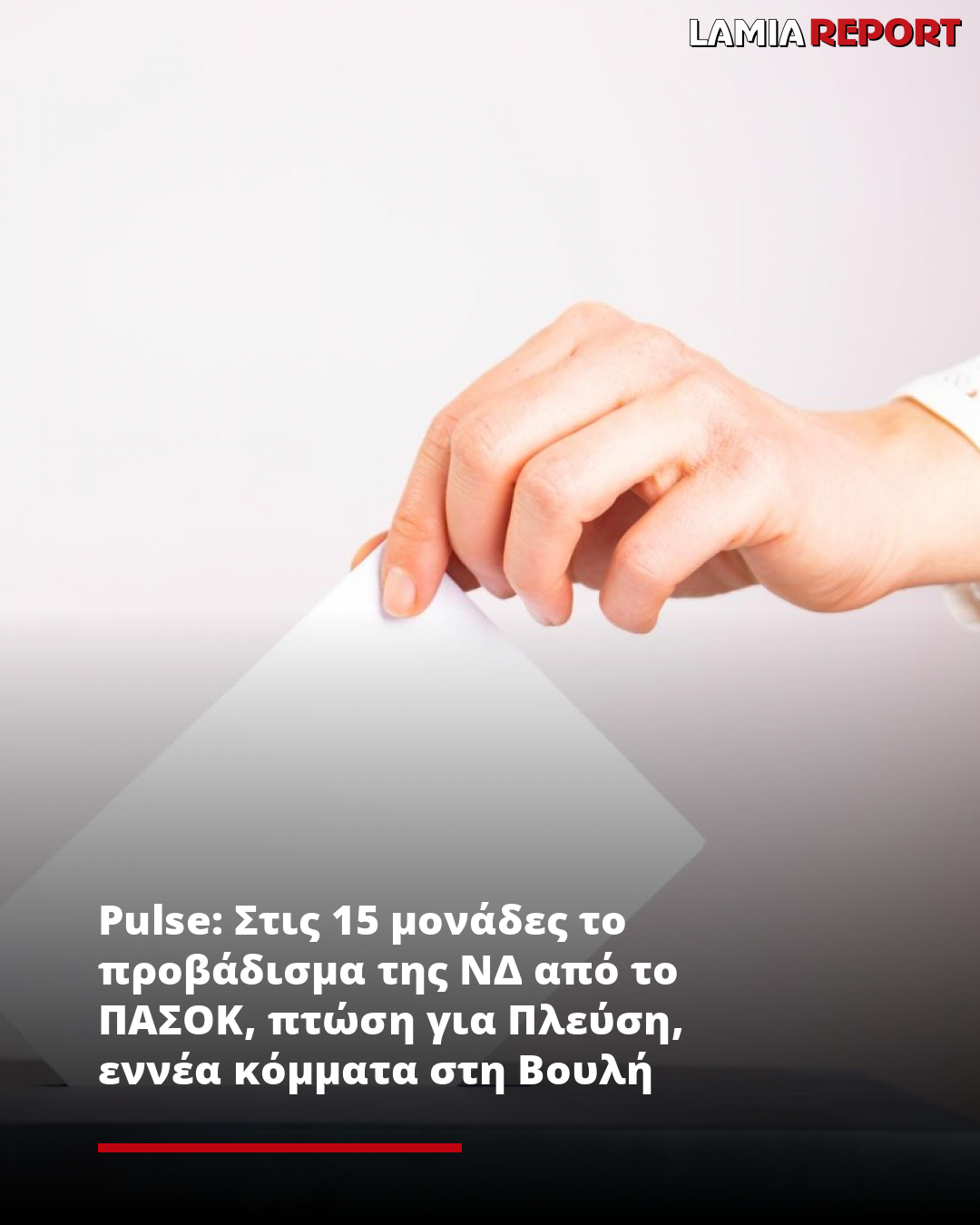 Pulse: Στις 15 μονάδες το προβάδισμα της ΝΔ από το ΠΑΣΟΚ, πτώση για Πλεύση, εννέα κόμματα στη Βουλή