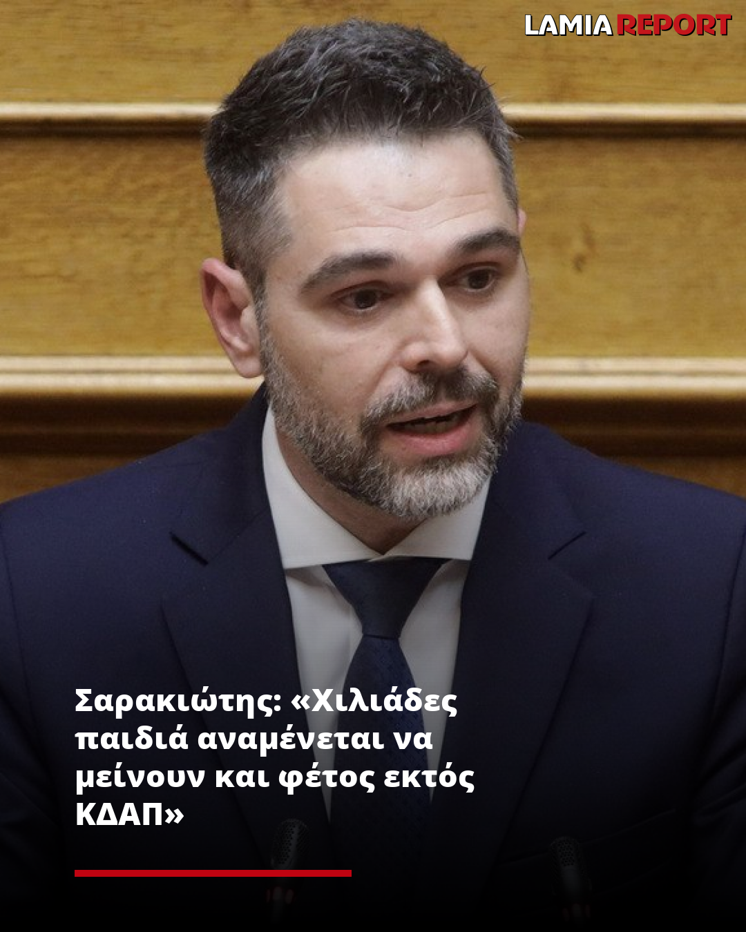 Με κοινοβουλευτική παρέμβασή του προς τους Υπουργούς Εσωτερικών και Κοινωνικής Συνοχής, ο Βουλευτής Φθιώτιδας Γιάννης Σαρακιώτης ανέδειξε το θέμα του διάχυτου προβληματισμού χιλιάδων οικογενειών, αναφορικά με τον κίνδυνο μη ένταξης των παιδιών τους στα Κ.Δ.ΑΠ. και Κ.Δ.ΑΠ. Μ.Ε.Α., καθώς περίπου 66.000 παιδιά έμειναν πέρυσι εκτός της δωρεάν φιλοξενίας στα τμήματα αυτά.