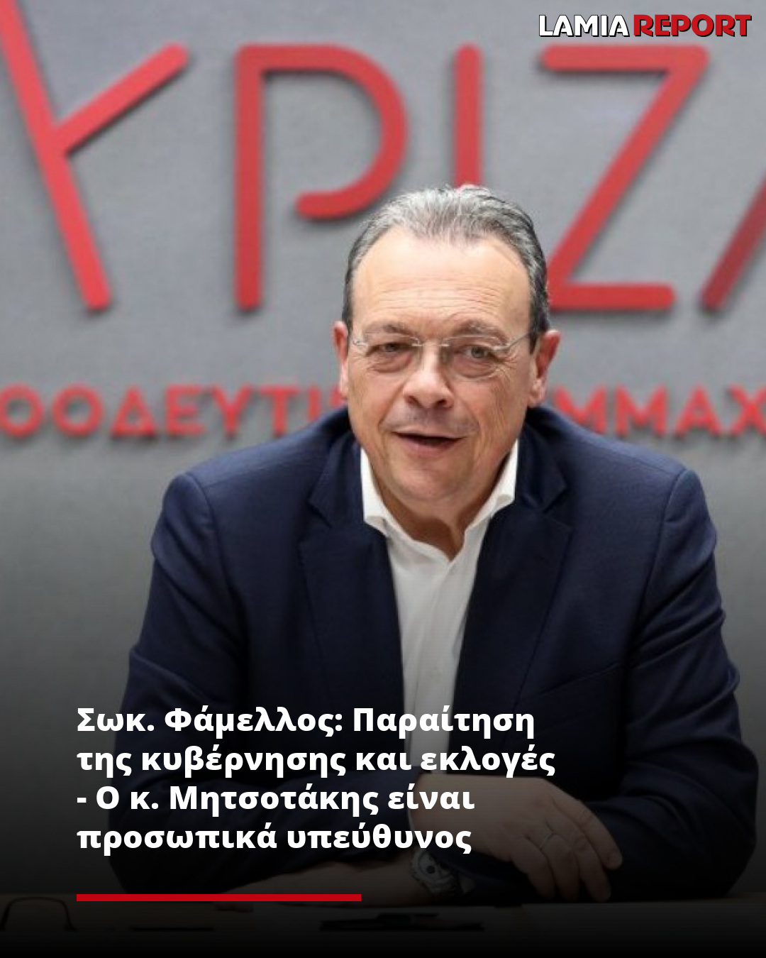 Σωκ. Φάμελλος: Παραίτηση της κυβέρνησης και εκλογές - Ο κ. Μητσοτάκης είναι προσωπικά υπεύθυνος