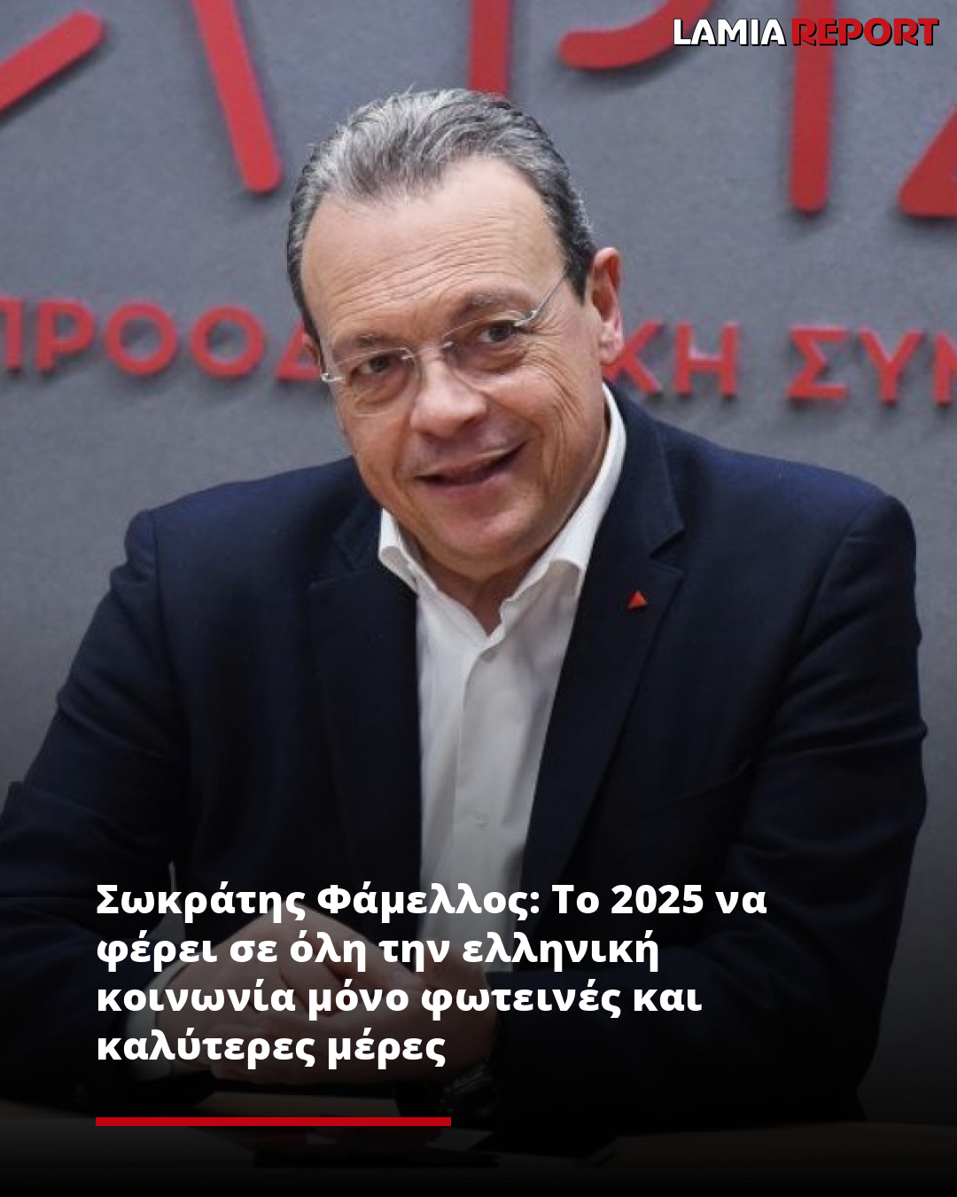 Όπως τονίζει στο μήνυμά του ο πρόεδρος του ΣΥΡΙΖΑ, Σωκράτης Φάμελλος «εύχομαι από καρδιάς το 2025 να φέρει σε όλη την ελληνική κοινωνία μόνο φωτεινές και καλύτερες μέρες.