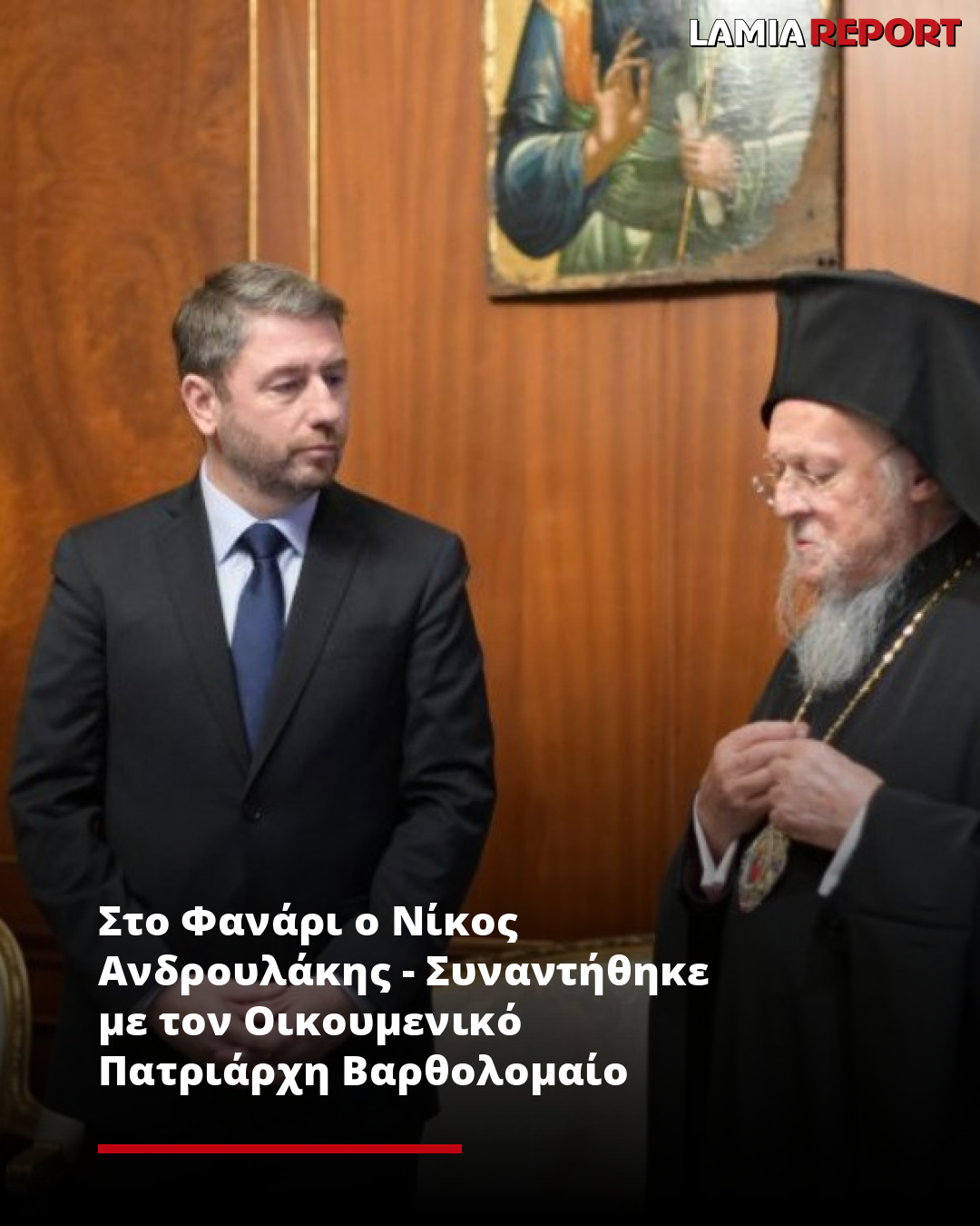 Με τον Οικουμενικό Πατριάρχη κ.κ. Βαρθολομαίο συναντήθηκε σήμερα το απόγευμα στο Φανάρι ο πρόεδρος του ΠΑΣΟΚ-Κινήματος Αλλαγής, Νίκος Ανδρουλάκης, ο οποίος βρίσκεται στην Κωνσταντινούπολη.