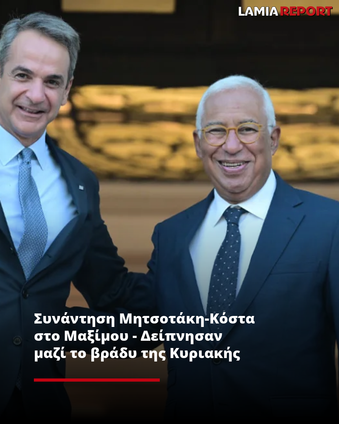 Κυριάκος Μητσοτάκης και Αντόνιο Κόστα, όπως αναφέρει το protothema.gr, δείπνησαν μαζί το βράδυ της Κυριακής στην οικία του Έλληνα πρωθυπουργού