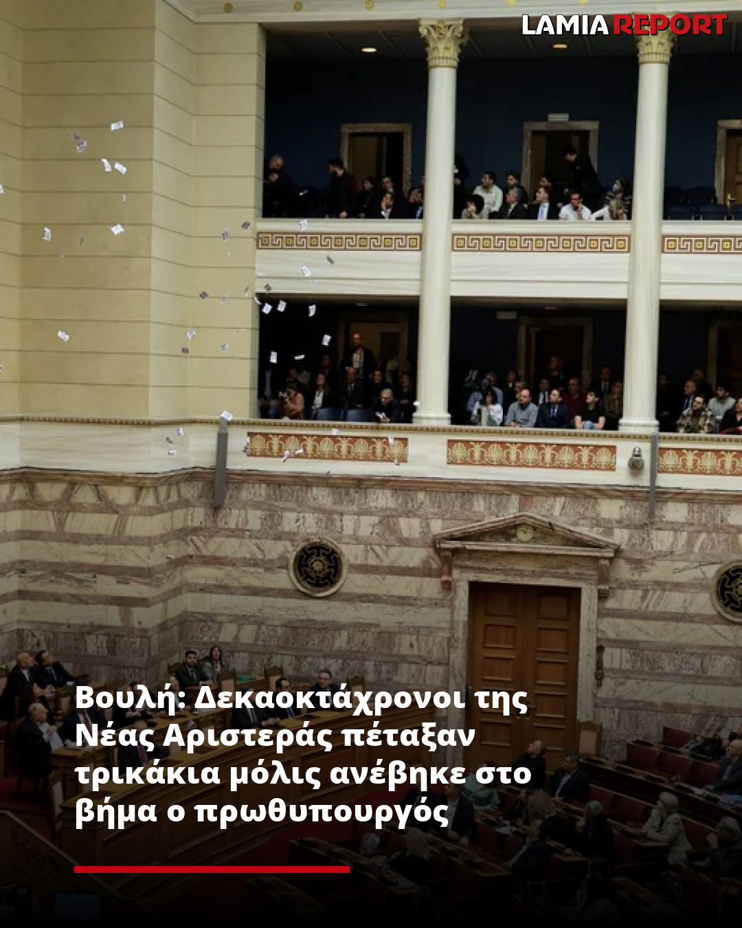 Βουλή: Δεκαοκτάχρονοι της Νέας Αριστεράς πέταξαν τρικάκια μόλις ανέβηκε στο βήμα ο πρωθυπουργός