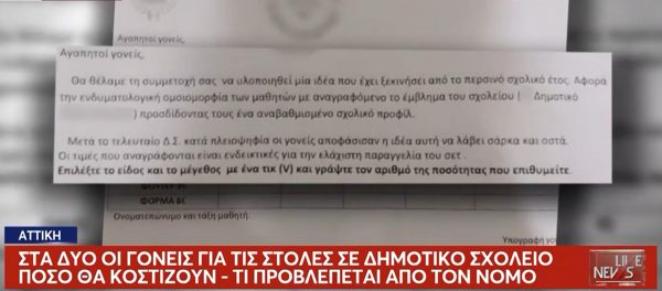 Να επαναφέρουν τις μαθητικές στολές ώστε να αντιμετωπιστεί η ανισότητα που μπορεί να νιώθουν οι μαθητές, πρότεινε ο Σύλλογος Γονέων ενός συγκεκριμένου Δημοτικού σχολείου της Αττικής, προκαλώντας τις αντιδράσεις των γονιών.