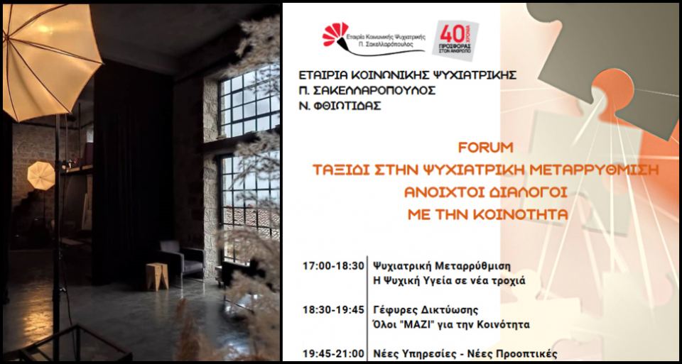 28.11.2022 | 05:20 Σήμερα το Forum «Ταξίδι στην Ψυχιατρική Μεταρρύθμιση - Ανοιχτοί Διάλογοι με την Κοινότητα»