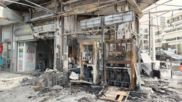 Από τη φωτιά που προκλήθηκε πέντε αυτοκίνητα κάηκαν ολοσχερώς και ακόμη τέσσερα έχουν υποστεί εκτεταμένες, υλικές ζημιές.