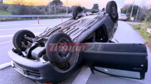 Τροχαίο με μία τραυματία στην Πύργου - Πατρών - Αναποδογύρισε όχημα κοντά στα Δουνέικα