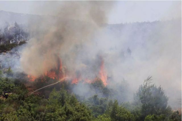 Επιχειρούν 12 οχήματα με 40 πυροσβέστες, 2 ομάδες πεζοπόρου.