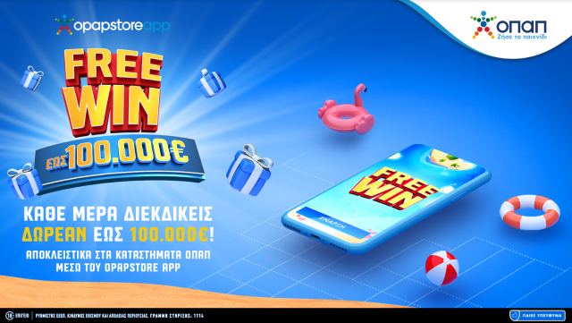 03.07.2023 | 10:25 Ραντεβού στα καταστήματα ΟΠΑΠ για το διασκεδαστικό FREEWIN που χαρίζει μέχρι και 100.000 ευρώ – Παίζεις δωρεάν κάθε ημέρα μέσα από το OPAP Store App
