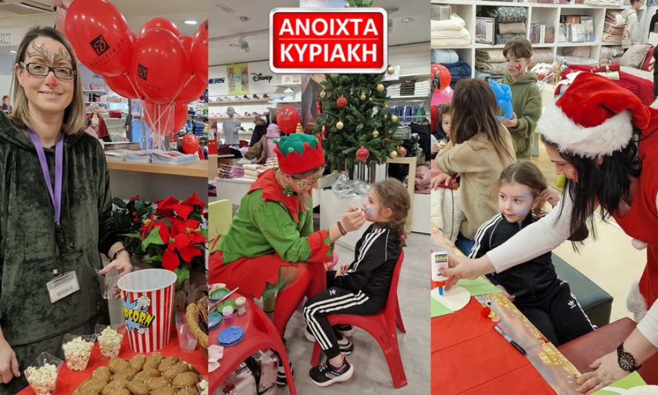 Ένα ακόμη εορταστικό event αφιερωμένο στα παιδιά, θα πραγματοποιηθεί αυτή την Κυριακή 29/12, στον 3ο όροφο του πολυκαταστήματος, με Face Painting, Χριστουγεννιάτικες Κατασκευές, Μπαλόνια, Κεράσματα, Εκπλήξεις και Μεγάλες Προσφορές!
