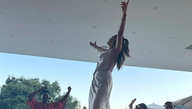 Με ψυχραιμία, η Τζένιφερ Λόπεζ έπιασε τον γρύλο και τον πέταξε με τον χέρι της με τέτοιον τρόπο που θα μπορούσε να θεωρηθεί χορευτική κίνηση