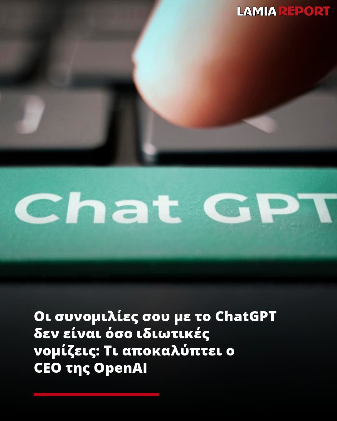 Όλο και περισσότεροι χρήστες μιλούν στο ChatGPT για προσωπικά θέματα, πιστεύοντας πως οι συνομιλίες τους είναι ιδιωτικές. Ο CEO της OpenAI, αποκαλύπτει γιατί αυτό μπορεί να είναι επικίνδυνο.