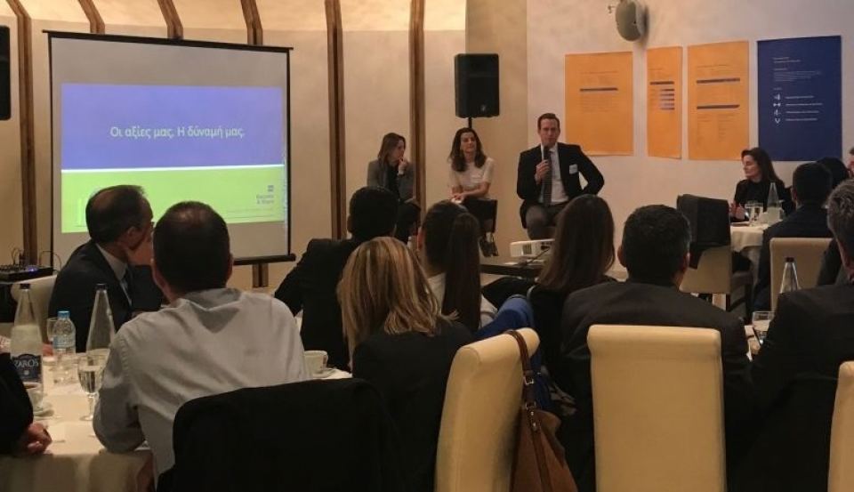ΗΦωτεινή Ιωάννου (Γενική Διευθύντρια, Corporate & Investment Banking), ο Γιώργος Καραμουσαλής (Βοηθός Γενικός Διευθυντής, Γραφείο Διευθύνοντος Συμβούλου) και ηΑγγελίνα Κουτσομητοπούλου (Senior Director, Organizational Learning & HR Development) ανέλαβαν τον συντονισμό της συνάντησης. Στη συνάντηση συμμετείχαν ο Στέλιος Ηλιάδης, Βοηθός Γενικός Διευθυντής, Δίκτυο Νότιας Ελλάδας & Νήσων και ο Δημήτρης Αυγέρης, Περιφερειακός Διευθυντής, Δίκτυο Νότιας Ελλάδας & Νήσων - Περιφερειακή Στερεάς Ελλάδας.