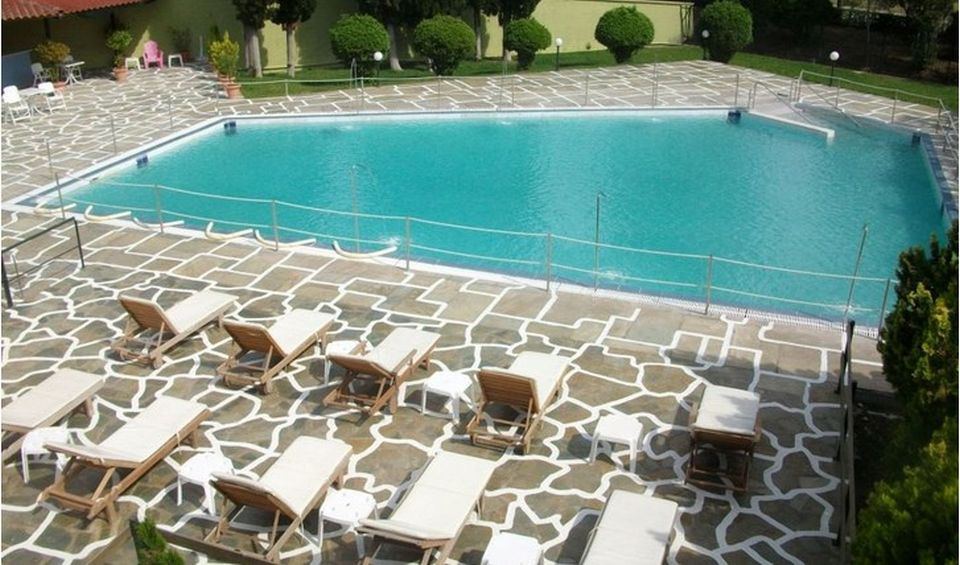 Οι επισκέπτες μας μπορούν να επισκέπτονται την εξωτερική κολυμβητική πισίνα ιαματικού νερού, επιφάνειας 187 τ.μ., πλήρως ανακαινισμένη, η οποία λειτουργεί με ιαματικό νερό.